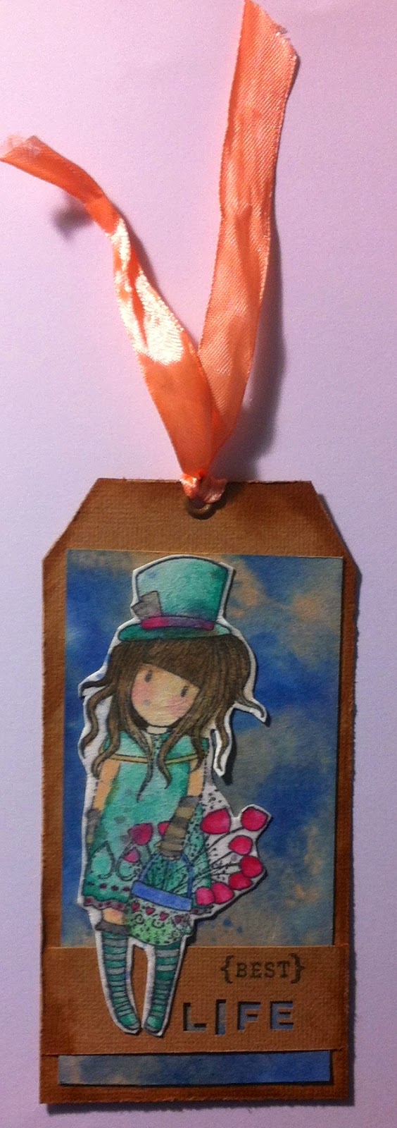 I created the background using distress ink pads and coloured her using watercolour pencils. I think she's a fab variation on the April tag.